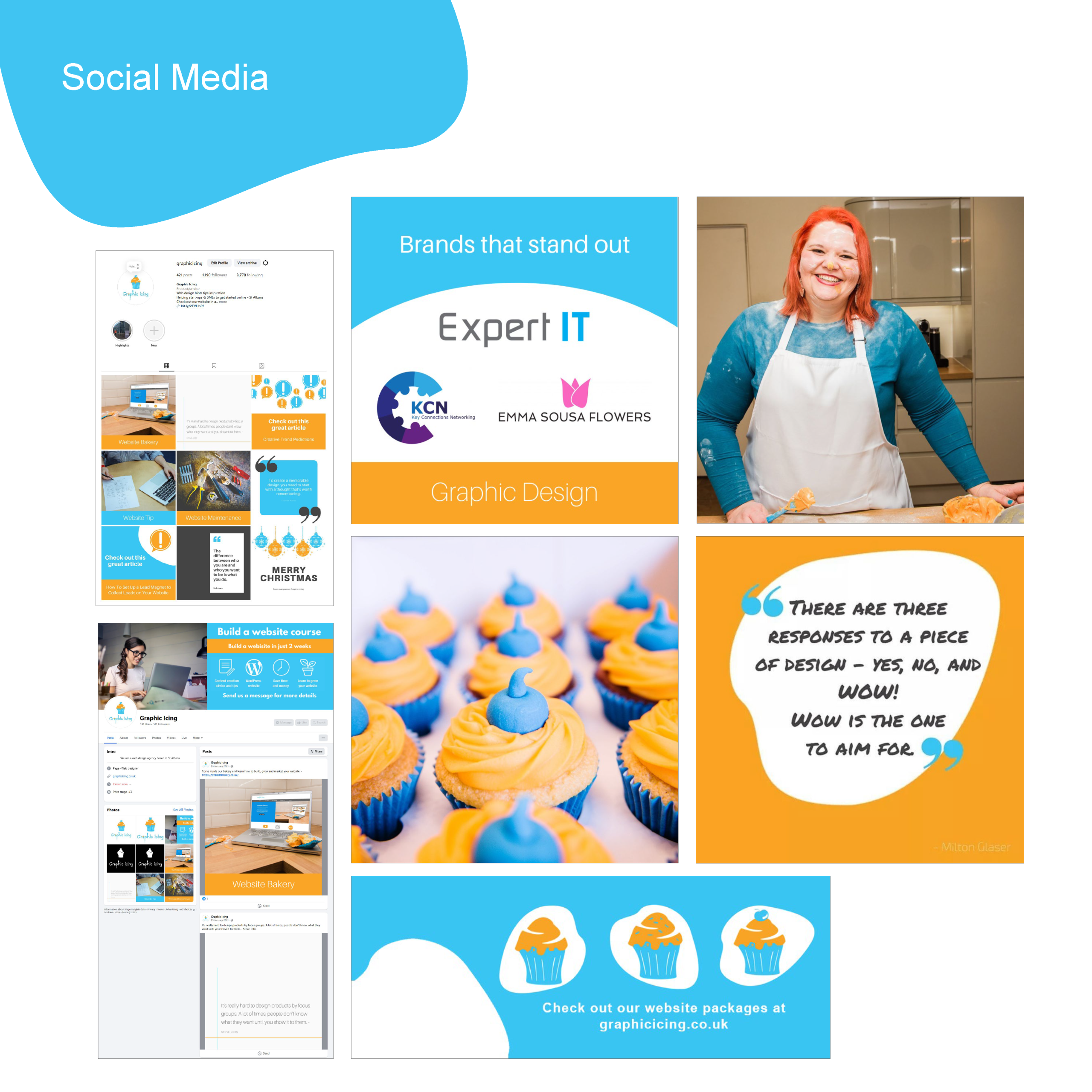 The Graphic Icing identity began with a clear aim, to create a brand that stood apart from traditional design businesses. The name and idea came from the metaphor around how icing makes otherwise identical cakes distinct, like branding gives businesses their unique look. I researched how other local agencies presented themselves and how they used their branding and saw an opportunity to position the business as approachable, jargon-free, and client-focused, with this fun unique branding identity.