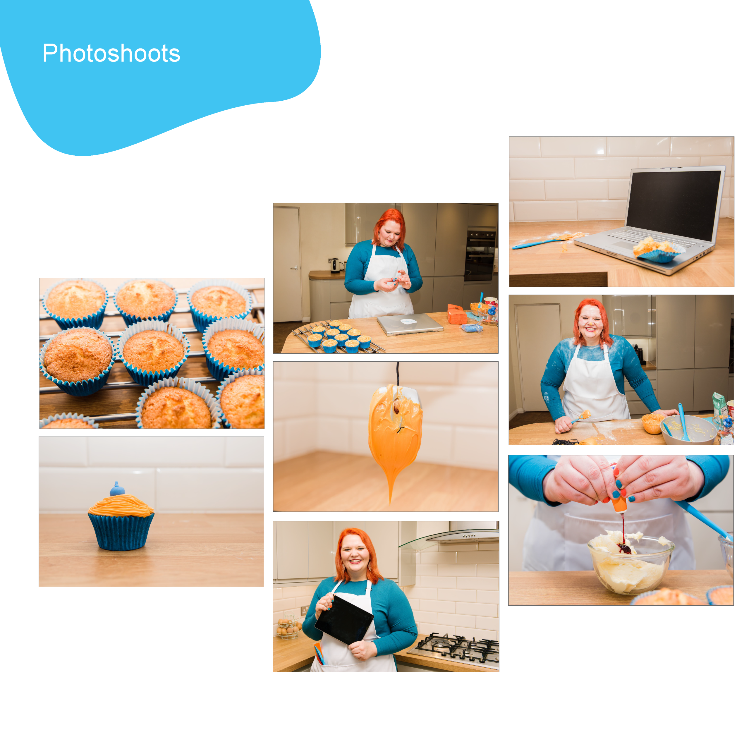 I started by creating hand-drawn lettering by piping icing on paper, which I scanned and vectorised in Adobe Illustrator. The supporting visual language was built around icing blobs and the bright blue and orange colour palette, chosen to convey friendliness and creativity. Helvetica was selected as the secondary typeface for its familiarity, balance, and clarity. These elements created an identity that was fun and creative.